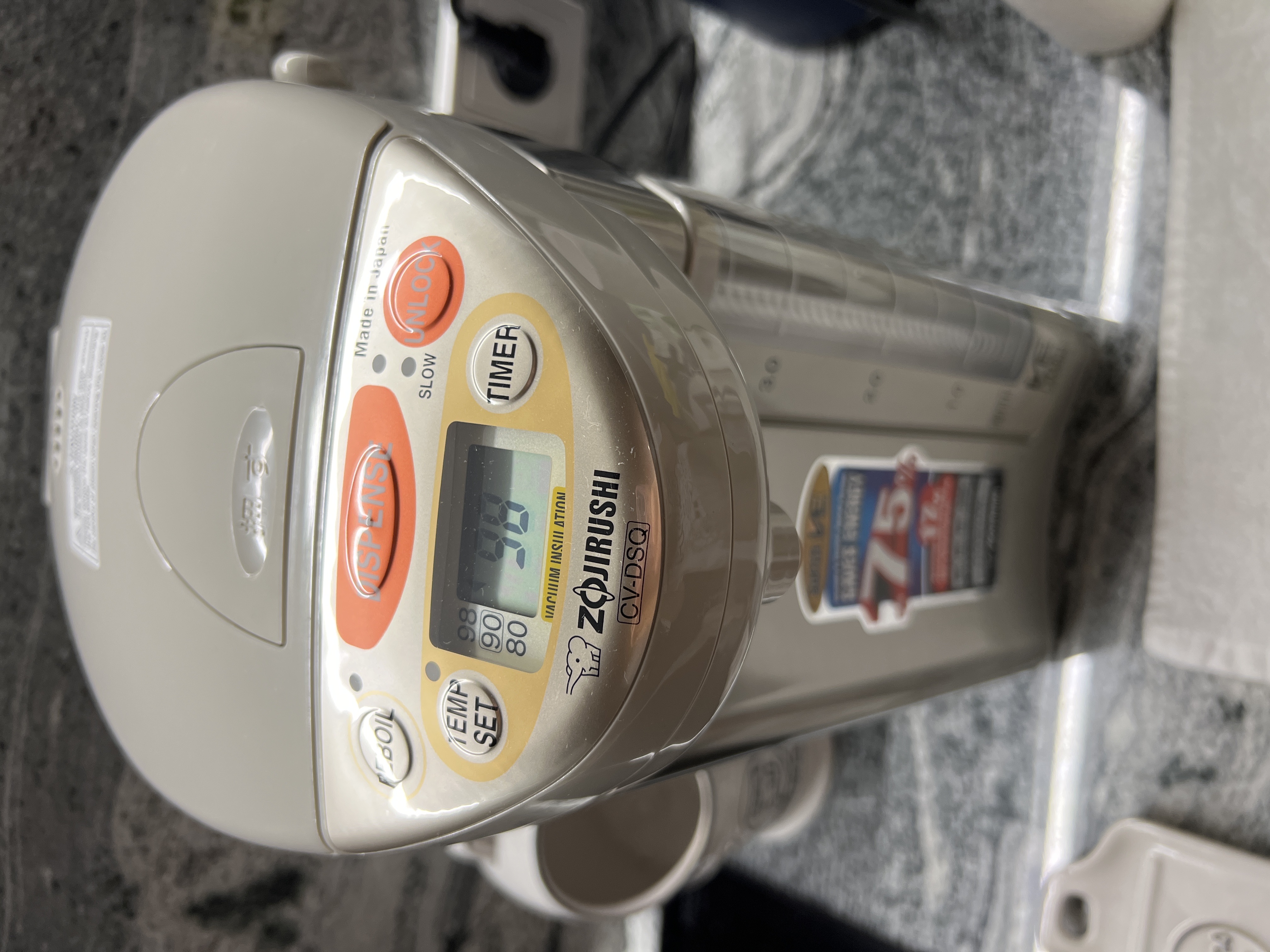 Зашла на сайт чтобы посмотреть термопот на подарок. Мы покупали в 2012г. модель: Электрический термопот ZOJIRUSHI CV-DSQ40 XA, великолепный товар, пользуемся беспрерывно. Отключаем только для очистки колбы от накипи примерно один-два раза в год. Не нарадуемся этой покупкой. Такой же агрегат у друзей, только на 5литров, вывезен из Японии в 2003г. Аналогов такой надёжной техники в нашем доме мало. Спасибо производителю!